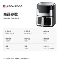 Macaiiroos 空气炸锅 6升大容量设计满足家庭使用需求,采用可视化触控屏幕操作便捷直观,智能免翻面技术让烹饪更轻松高效,健康少油炸出酥脆口感。