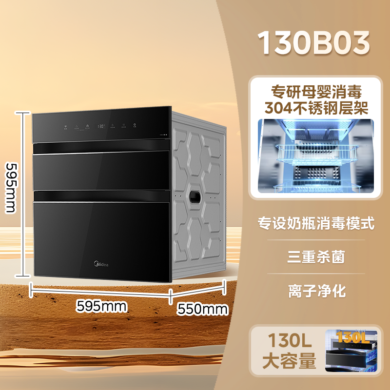 美的灭菌仓消毒柜家用小型嵌入式150B05碗筷柜烘干一体,是家庭厨房的得力助手。它具备多种实用功能,能够很好地对碗筷进行消毒与烘干。