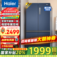 海尔(Haier)冰箱406升家用四开门十字对开门双开门变频一级能效超薄嵌入风冷无霜鲜派系列电冰箱国家补贴20% 406升星石蓝+一级双变频+风冷无霜+母婴空间