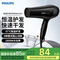 飞利浦 BHC020/05 电吹风,现活动售价仅104元,参与每满减优惠叠加后实付低至84.15元,比原价88.60元更优惠。这款电吹风拥有1800W大功率,配备6档风速调节和57°恒温护发功能,有效防止高温损伤头发,保留头发水分与养分。采用大风口设计,干发更快速,附带集风嘴和散风嘴两种选择,满足多种造型需求。支持智能控温,温度一键切换,还配有360°旋转可拆卸集风嘴和人体工学手柄,使用舒适便捷,是日常护发造型的理想之选。