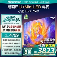 海信Hisense小墨系列75E5Q液晶电视,75英寸4K。原价5599元,海信旗舰店售价5699元,可参与100元满减并领取1000元优惠券,还有政府补贴20%(减1119.8元),最终实付3679.2元。