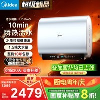 这款Midea美的活水系列F60 - 33UDProS(HE)电热水器有诸多亮点。它的机身宽度为695mm,短巧机身易于安装。其加热管升级为晶钻阻垢加热管,有荷叶仿生自洁涂层,阻垢率高达90%。双胆双镁棒也进行了升级,专利稀土镁棒添加稀土元素,全时抑菌净胆,终身免换。内胆采用进口珐琅材料无缝内胆,抗腐抗垢效果好。它还运用了美的专利活水技术,内置高精度智能芯片智能监测水质,能自动启动杀菌程序,确保用水洁净。并且支持美的美居APP远程智控,远程调节水温,产品尺寸为695565320mm。