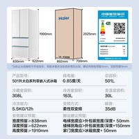 海尔(Haier)冰箱501L零嵌式法式多门四开门太白系列 全空间保鲜EPP净味除菌一级变频风冷无霜智能冰箱以旧换新 501L白巧+全空间保鲜+零距离嵌+EPP超净