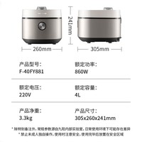 九阳(Joyoung)电饭煲家用电饭锅4L升3-8人晶钻球形内胆22分钟特快煮饭多功能3A级好米饭不粘内胆智能预约煮饭锅 F-40FY881【到手199】 4L