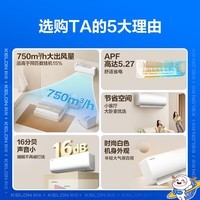 科龙KFR - 33GW/QJ1 - X1壁挂式空调,1.5匹,由海信出品,被称为小布丁。这是一款新一级能效的空调,APF高达5.27。它有着750m³/h的超大风量,制冷时20秒就能凉爽起来,制热40秒就能暖房,升频速度非常快,让你无需长时间等待冷热效果。运行时声音很轻,低至16dB(A),能为你营造安静的睡眠空间。室外机采用热镀锌钢板、纳米陶化等七重防锈工艺,工艺难度更高,可使室外机寿命更长久,还有健康自清洁功能,让你享受健康好空气,并且压缩机可享十年保修。