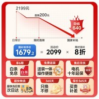 现活动售价2199元,参与政府补贴20%叠加20%起减优惠后立减439.8元,实付低至1249.2元,下单还返现510元京豆,真正到手价仅需1249.2元,性价比超高,是追求品质生活的家庭优选之选。