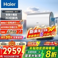 海尔(Haier)【小蓝瓶净肤洗BK7】麦浪系列富锶矿泉浴超薄双胆电热水器扁桶小魔盒3DMAX速热3500W变频巨能洗 80L 3500W 超大水量全家满足BK7
