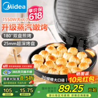 美的(Midea)电饼铛电饼档家庭用双面加热加大加深烤盘大尺寸上下盘电煎烤烙饼专用锅薄饼早餐机电饼铛子烙饼锅 【1550w大火力 升级蒸汽嫩烤】JKC3051