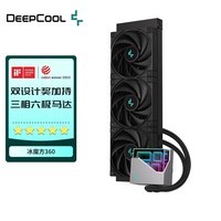 DEEPCOOL 九州风神 冰魔方360一体式水冷散热器 黑色,外观科幻感十足,配备丰富的ARGB灯效,支持5V ARGB神光同步,轻松打造个性炫酷主机氛围。采用360一体式设计,冷排尺寸为402×120×27mm,全新Z字型排列冷排结构,鳍片开孔设计提升热接触面积,导热更高效,水泵升级为第4代高性能水泵,内置陶瓷轴承与轴芯,运行更静音,流量与转速相较前代提升30%,水泵外壳采用蒙德里安几何形体设计,兼具美感与实用性,大尺寸紫铜底座贴合更稳固,搭配更厚铜底铲齿,提升导热效率。支持Intel与AMD多平台,包括LGA1700/1200/115X及AM4/AM5等主流接口,兼容性强。冷排风扇最大转速2250RPM,采用FDB轴承,5年质保持久可靠。
