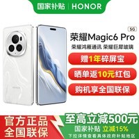 荣耀 HONOR Magic6 Pro 5G手机 16GB+512GB 祁连雪 配色,搭载第三代骁龙8旗舰芯片,性能强劲流畅,带来旗舰级使用体验。手机采用“方圆星轮三摄”设计,配备5000万超动态可变鹰眼主摄、5000万广角微距主摄与1.8亿潜望式长焦,结合荣耀计算摄影平台,成像更快更清晰。正面搭载6.8英寸京东方OLED曲面屏,支持120Hz刷新率、360Hz超频同步显示技术与4320Hz超高频PWM调光,视觉体验流畅护眼。机身采用金属中框与四曲面设计,厚度仅8.9mm,重量229g,配备SGS五星抗跌认证的巨犀玻璃,坚固耐用。内置第二代青海湖5600mAh电池,支持80W有线快充、66W无线快充与7.5W无线反充,续航持久无忧。同时支持鸿燕卫星通信与荣耀自研射频增强芯片C1+,信号更强更稳,搭配MagicOS 8.0系统,实现更智能的人机交互体验。