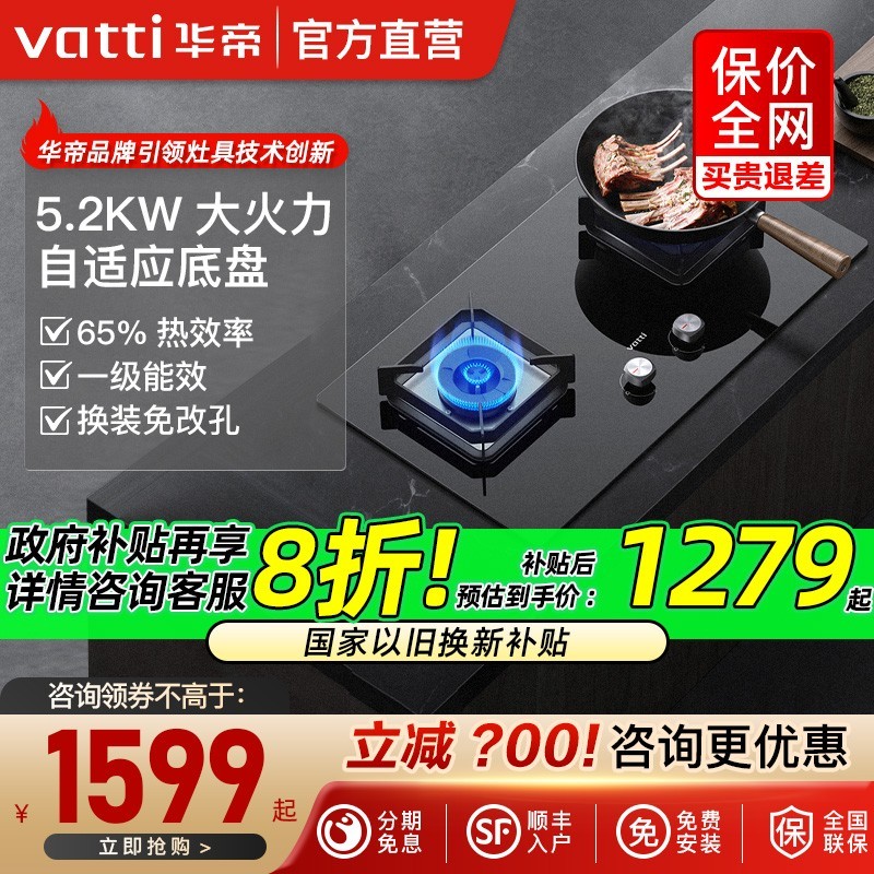 华帝i10089B系列嵌入式燃气灶,采用高效燃烧技术,火力猛且节能,满足家庭爆炒需求,热负荷达5.2KW,火候掌控更精准,黑色外观设计简约大气,适配天然气气源,安装方便,安全性能高,是厨房升级的理想之选,现天猫商城限时优惠,到手价仅需999元,降价前售价1699元,本次降幅41%,原价1899元,现在入手超值划算,不容错过!