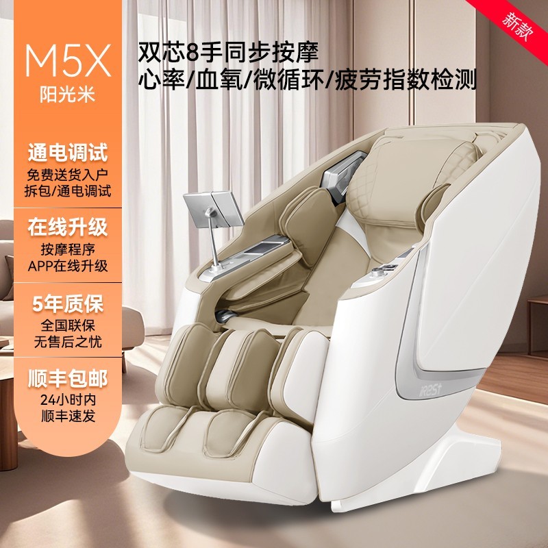 艾力斯特M5X双机芯按摩椅家用全身智能全自动电动太空舱现正火热促销中,这款高端按摩椅搭载先进双机芯系统,精准覆盖全身经络,模拟真人按摩手法,带来沉浸式舒缓体验,智能程序随心调控,适配多种按摩需求,太空舱式包裹设计,让您在家也能享受全方位放松。