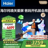 海尔Haier纯境关爱屏65Q60C电视,屏幕尺寸为65英寸,拥有144Hz高刷新率,4+64GB的大内存组合。它是一款超薄的4K电视,非常适合老人使用,具备国民AI智能功能。其遥控为灵动指向遥控,操作方便。