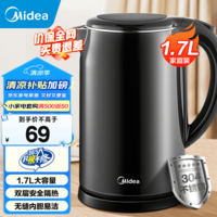 Midea美的MK-SH17M301电水壶,曜石黑外观设计简约大气,1.7L大容量轻松满足家庭使用需求。1500W大功率带来快速加热体验,有效节省等待时间,304不锈钢内胆、内盖和滤网,健康安全耐用,双层防烫壶身设计贴心保障使用安全。