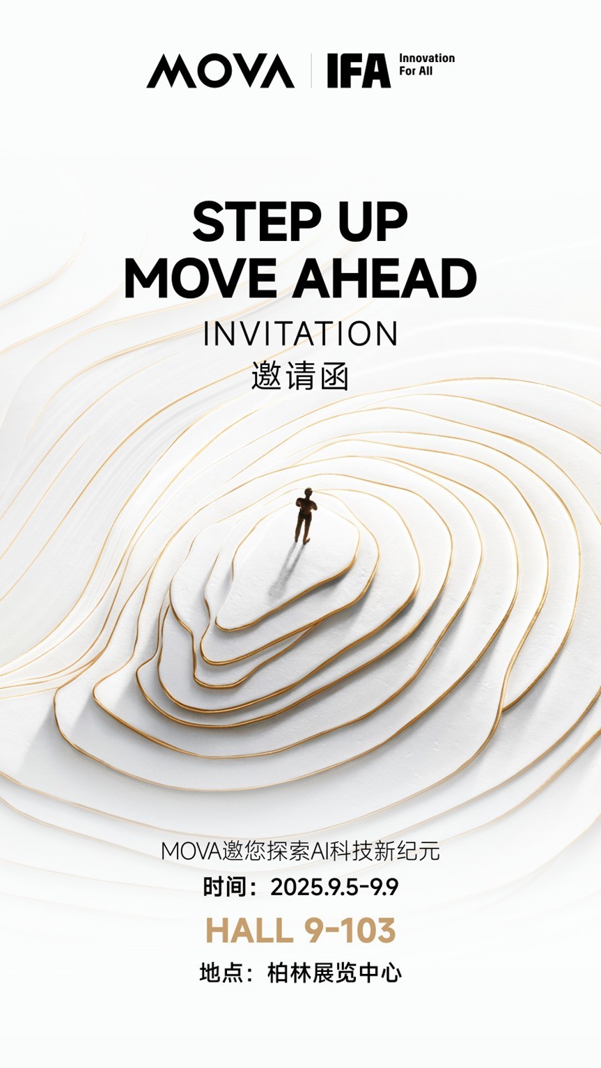 全球超高端AI智能生活科技引领者MOVA即将亮相柏林国际电子消费品展览会(IFA2025)。本次参展,MOVA以"全维进阶,越级而上"为主题,室内外全场景的12大智能产品线首次全亮相,构建覆盖清洁、个护、户外的完整智能生态,彰显其重塑未来生活方式的雄心与实力。