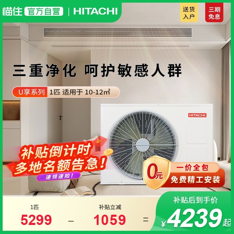 日立 HITACHI 中央空调家用客厅风管机1匹一拖一级能效U享系列现正火热促销中这款空调采用先进的节能技术达到国家一级能效标准运行高效安静适合家用客厅环境带来舒适清凉体验现在在天猫商城促销价仅需4399.2元原价7999.00使用国家补贴后直降1099.8元以旧换新还能享更多优惠喜欢的朋友千万不要错过