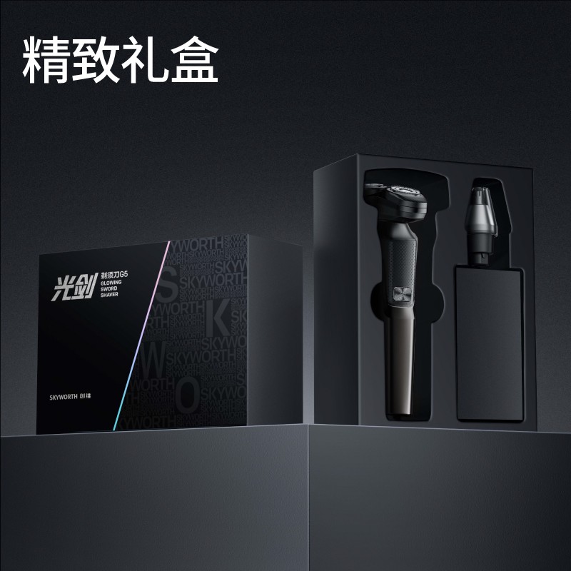 创维光剑G5电动剃须刀是专为男士打造的实用刮胡刀。它采用旋转式设计,具备干湿双剃功能,既可以干剃也能湿剃,满足不同场景需求。并且支持快充,方便快捷,随时保持电量充足。该剃须刀还能全身水洗,清洁起来十分轻松。这款剃须刀便于携带,无论是在家中使用还是外出旅行都很合适。