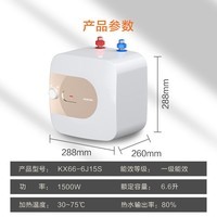 阿诗丹顿 KX66-6J15S 储水式厨宝 6.6L 上出水是一款专为现代厨房设计的高效热水解决方案,搭载1500W大功率加热系统,热水输出率高达80%,实现快速加热,满足连续用水需求。产品采用一级能效标准,省电节能,配合6.6L大容量设计,适合对热水用量较大的家庭使用。内胆选用耐用的金圭搪瓷材质,搭配316不锈钢加热管和加长阳极镁棒,有效防止腐蚀,延长使用寿命。支持断电记忆功能与智能旋钮操作,温度可在30-75℃自由调节,达到设定温度自动断电,安全又省心。整机具备六重安全防护,达到IPX4防水等级,使用更安心。支持上出水和下出水两种安装方式,适配多种厨房环境,产品尺寸为288288260mm,小巧不占空间。