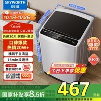 创维推出的 T80F 定频波轮洗衣机,外观为淡雅银配色,简约又时尚。这是一款 8KG 大容量的全自动波轮洗衣机,全新升级。它具备智能模糊洗功能,能根据衣物重量和脏污程度自动匹配合适的洗涤程序。采用 PCM 精钢箱体,坚固耐用;高凸筋波轮搭配不锈钢内桶,再加上 360°喷瀑水流,可畅享澎湃动力,实现高效洗涤。
