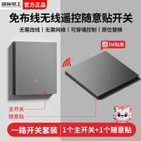 国际电工无线遥控智能开关家庭双控免布线面板220v卧室随意贴开关控制器一开套装,便捷安装无需复杂布线,轻松实现传统开关智能化升级,适用于卧室、客厅、走廊等多种场景,支持远程遥控操作,使用安全稳定,适配220v标准电压。