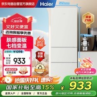 海尔Haier云柔米系列BCD-218LHC300GL直冷三门冰箱,218升大容量科学分区存储,冷藏、变温、冷冻三门独立控温,满足多种食材保鲜需求,直冷技术制冷均匀高效,节能低噪,外观采用简约米色设计,百搭家居风格。