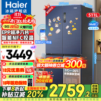 海尔鲜派系列BCD-511WGHTD79B9U1风冷十字对开门冰箱,511L大容量设计,满足全家食材存储需求,冷藏室346L、冷冻室77L搭配88L宽幅变温室,温度可在-20~5℃自由调节,灵活应对不同食材保鲜需求。搭载变频风机与变频压缩机,日均耗电仅0.88kWh,符合国家一级能效标准,节能静音同时实现强劲冷冻力达5.5kg/12h。内置阻氧干湿分储抽屉,果蔬保湿区湿度维持在90%左右,干货珍品区通过微风道技术保持约45%湿度,避免返潮,特别支持母婴模式和零度保鲜,呵护宝宝食材与高端食材新鲜如初。EPP超净系统有效实现99.999%杀菌率与98.7%除味率,打造健康储鲜环境。整机含门厚度仅636mm,抽屉支持90°直角开门,轻松嵌入橱柜不占地。