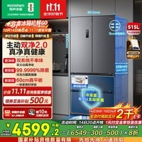 容声方糖系列BCD-515P60FZMAD风冷法式多门冰箱,515L大容量设计满足全家储鲜需求,月岩灰高颜值外观轻松融入现代家居风格,采用风冷无霜技术,制冷均匀不结霜,搭配双变频节能系统,静音低耗长效运行。360°立体循环送风,锁住食材新鲜口感,法式四门结构分区科学,冷藏冷冻灵活掌控。