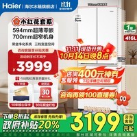 海尔(Haier)冰箱416升法式多门四开门 594mm超薄零嵌入式小户型小红花系列 一级变频风冷无霜黑金净化家用冰箱 416升小红花丨594专业超薄丨700超窄机身