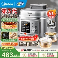 美的(Midea)5升电压力锅4-5人高压 2025新款电高压锅0涂层316L不锈钢内胆高压电饭锅高压锅家用3-4个人煲汤锅 【第3代沸腾浓香】浓香&快压双模式 5L