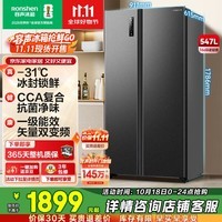 容声BCD-547WD12HP风冷对开门冰箱,547升大容量设计,满足全家储鲜需求,冷藏冷冻分区合理布局,空间利用率高,风冷无霜技术有效避免结霜困扰,保持食材持久新鲜,节能静音运行,省电更省心,外观简约大气,轻松融入各种家居风格。