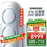 三星SAMSUNG3匹新一级能效柜式空调,采用全直流变频技术,AI智能语音控制搭配WIFI远程操控,让冷暖调节更便捷更智慧,适用于38-50㎡大空间,制冷热高效稳定,节能省电表现优异。这款柜机不仅外观大气,性能更是强劲,外机重量接近140斤,硬件配置扎实,相当于4.5匹的用料规格,带来更强的运行稳定性和散热效率。