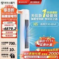 格力GREE空调天仪3匹立式柜机全新上市,新一级能效标准,节能更省电,强劲变频冷暖系统让家中四季如春。搭载85°左右宽幅送风技术,配合高达1210m³/h的循环大风量,冷热迅速均匀覆盖客厅每个角落,开机不久即享舒适温度。内置56℃净菌自洁功能,有效清洁内部蒸发器,保持空气清新健康;支持8℃离房保温,节能又贴心,回家依旧温暖如初;独立除湿模式,潮湿天气也能保持干爽舒适。