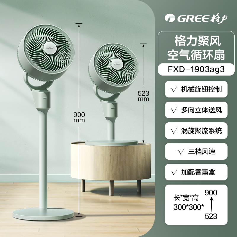 格力香薰空气循环扇FXD-1903ag3,强劲风力搭配静音低噪设计,带来舒适清凉体验,适合家用客厅、卧室等多种场景。支持台地两用灵活摆放,轻松实现全屋空气循环。独特香薰功能,吹风同时散发清香,净化空气提升生活品质。