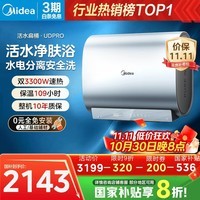 美的 TECH 80升电热水器 活水净肤UDpro双3300W 大容量速热家用智能安全电热水器,搭载活水净肤技术,有效减少内胆沉淀物,出水洁净呵护肌肤,双3300W速热系统,加热更快,热水供应更充足,满足全家洗浴需求。智能预约加热、远程操控,使用更便捷,多重安全防护保障洗浴安全。