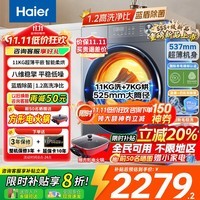 海尔(Haier)超越4.0滚筒洗衣机11公斤大容量全自动超薄平嵌525大筒径八维减震蓝盾除菌58E1 以旧换新 补贴20% 11公斤洗烘+1.2高洗净比+智能柔烘+537超薄