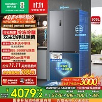 容声BCD-505P60CZMAD-KC51风冷十字对开门冰箱,505L超大容量设计,满足全家食材储存需求,月岩灰外观简约大气,轻松融入现代家居风格。采用风冷无霜技术,制冷更均匀,告别手动除霜烦恼;多维立体送风系统有效锁住食物水分与营养,保鲜更持久。搭载智能感温控制系统,精准控温,节能省电。