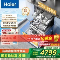 海尔(Haier)【双面洗W5000Plus+】20套+3层容量家用全自动嵌入式洗碗机 60000Pa强水压七星级消杀UV双重除菌 【双面洗洁净科技】EYBW20566GHU1钢琴黑
