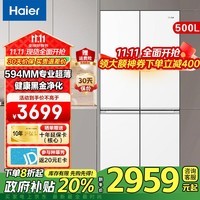 海尔Haier小红花绽放版BCD-500WGHTDEDWVU1风冷十字对开门冰箱,500L大容量设计,满足全家储鲜需求,采用风冷无霜技术,均匀制冷不结霜,搭配双循环系统有效避免串味问题,让食材持久保鲜。十字对开门科学分区,取物更便捷,智能感温控温精准,节能省电更安心。外观简约时尚,小红花元素增添家居温馨感。