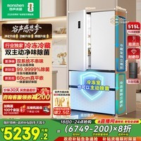 容声方糖系列BCD-515P60FZMAD风冷法式多门冰箱515L月岩白,时尚外观搭配实用设计,大容量存储轻松满足全家需求。搭载主动双净2.0技术,双系统独立制冷不串味,实现双主动真净味,除菌率高达99.99%,全方位守护家人饮食健康。
