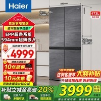 海尔(Haier)冰箱473升超薄零嵌入式十字对开门四门一级能效双变频宽幅变温干湿分储除菌大容量电冰箱补贴20% 473L+594mm超薄零嵌入+EPP超净系统
