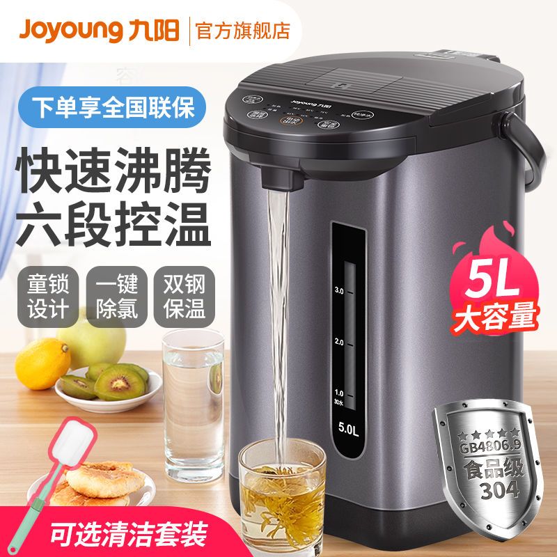 九阳ZMD安心系列K50ED-WP4150保温电水壶现正热销中,大容量5L黑色款满足家庭日常饮水需求,搭载1200W大功率加热系统,聚能速热,烧水更快更高效。电动出水设计,操作便捷,先按童锁键解锁再长按即可出水,安全又省力。壶身配备水位可视窗,水量一目了然,可拆卸上盖设计让加水和清洁更加轻松方便。