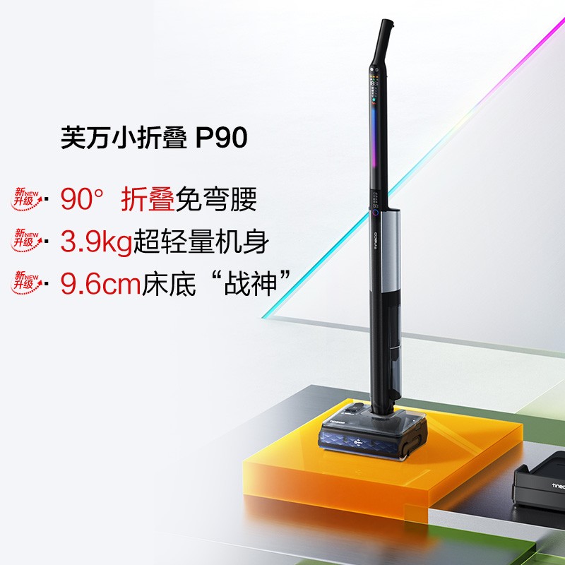 Tineco添可洗地机安静0缠毛躺平芙万Fold小折叠系列P90/X90全新升级上市,专为家庭深度清洁打造,集吸尘、拖地、自清洁于一体,真正做到高效省力。创新躺平设计可贴合墙边角落,轻松清理家具缝隙,搭配智能感应系统,自动调节出水量和吸力,干净不残留。特有0缠毛技术,有效防止毛发缠绕滚刷,宠物家庭也能安心使用。整机小巧可折叠,收纳更方便,不占空间。