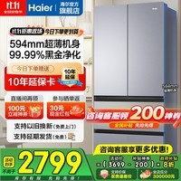 海尔(Haier)冰箱488升超薄60cm内法式多门四开双对开门可嵌入小红花套系变频一级能效风冷无霜大容量国家补贴 488L+594mm超薄+黑金净化+母婴三挡变温