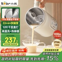 小熊白月光豆浆机破壁机家用1.2L大容量设计专为3-4人家庭使用带来高效便捷的健康生活体验2025新款DJJ-H08S2升级版采用316L不锈钢材质内胆更耐用更安全支持全自动免煮功能一键操作轻松制作香浓豆浆还能研磨米糊果汁等多种饮品满足多样化饮食需求目前京东活动售价279元参与满1元打9折并享受补贴15%起立减37.67元多重优惠叠加后下单1件实付低至213.44元限时特惠到手价仅需200元机会难得赶紧抢购享受品质早餐新方式