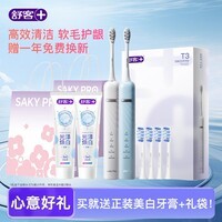Saky舒客T3电动牙刷情侣套装来啦!它是声波自动充电式的,套装包含冰岛白与挪威蓝两种清新配色,很适合情侣使用。