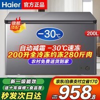 海尔(Haier)【零下35度】速冻超低温冰柜家用无需除霜300升以上全冷冻柜新一级能效省电商用大容量卧式冷柜 200升 极速达【-30℃全冷冻无需除霜】性价比首选
