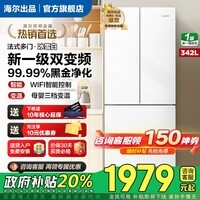 海尔(Haier)冰箱出品342升双开门法式多门冰雪白新一级双变频三档变温黑金净化节能省电leader电冰箱国家补贴 【342升】冰雪白+新一级能效+三档变温+黑金净化