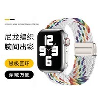 狸贝多适用iwatch10表带S9苹果S8手表applewatch9新款S10尼龙8编织7磁吸S7春夏SE男高级ultra女运动腕带 苹果磁吸编织表带-白彩虹 适用38/40/41/42mm 表盘通用