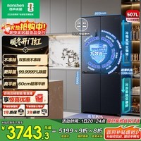 容声BCD-507E50CZLAD风冷十字对开门冰箱,507L大容量设计满足全家储鲜需求,星砾灰外观时尚大气,轻松融入现代家居风格。采用风冷无霜技术,制冷更均匀,免除手动除霜烦恼,同时精准控温锁住食材新鲜。十字对开门科学分区,冷藏冷冻各司其职,取物便捷不串味。