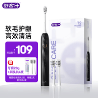 舒客Saky+电动牙刷T2声波5档黑色款现超值优惠,原价99元,现京东售价119元,领取119减30元优惠券,再叠加9折券及国补减免11.57元,最终到手价仅需65.53元,性价比超高!这款电动牙刷采用高效声波技术,支持5档清洁模式,满足不同口腔护理需求,刷得干净更护牙龈。套装包含主机一支及4支替换刷头,还额外赠送牙膏,全家可用,省心又实惠。外观简约时尚,黑色机身更显质感,充电方便续航持久,是日常口腔护理的理想之选。机会难得,好价不容错过,赶紧抢购!